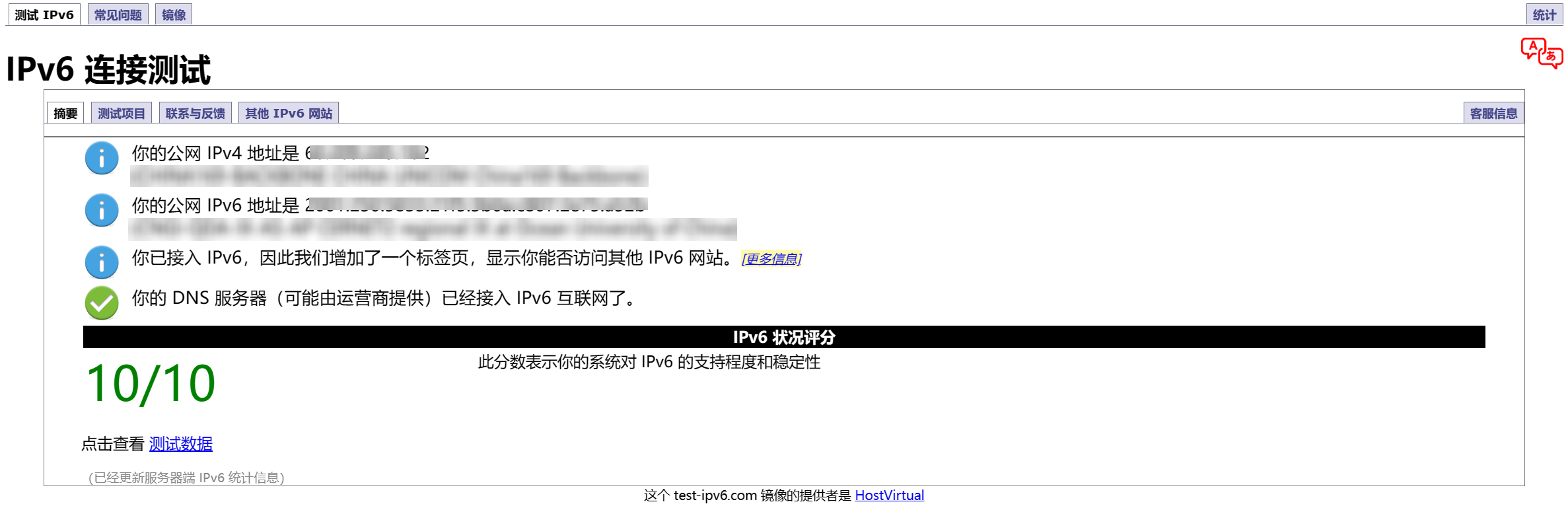 在电脑上面访问IPv6 测试 (test-ipv6.com)