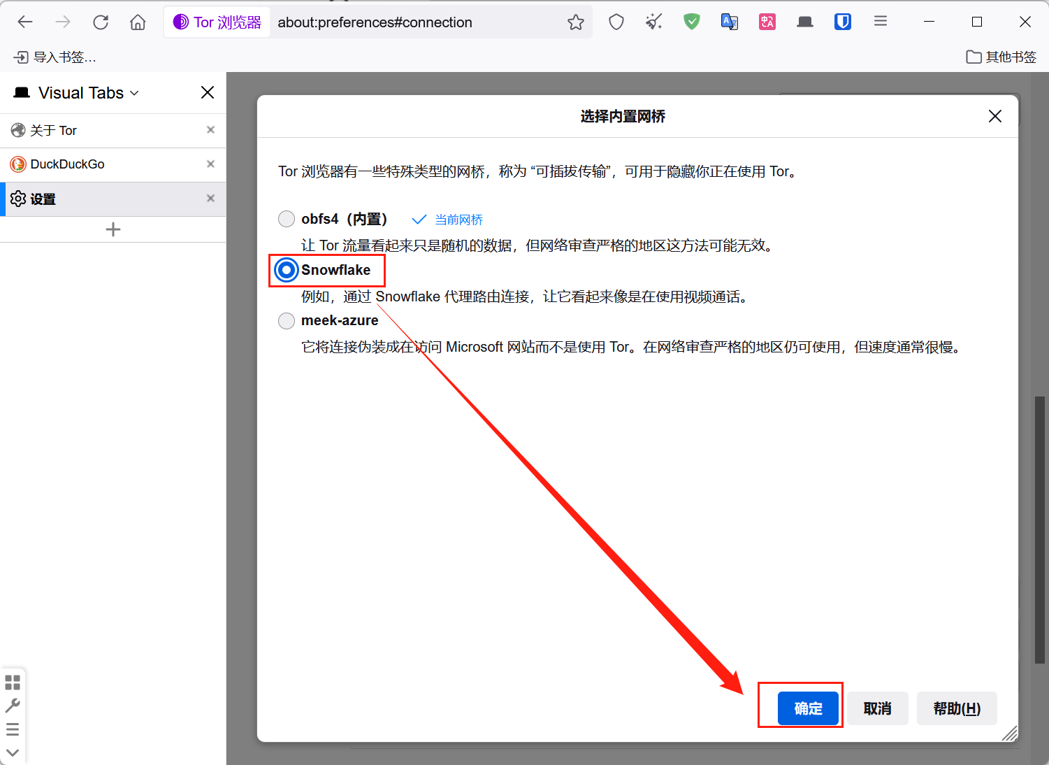 在国内使用tor,不仅仅需要代理,还需要配置网桥