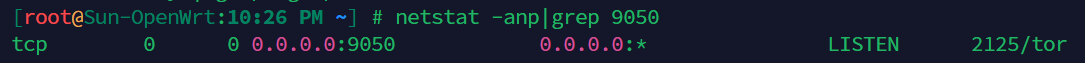 ssh到路由器,输入以下命令查看9050端口的占用情况