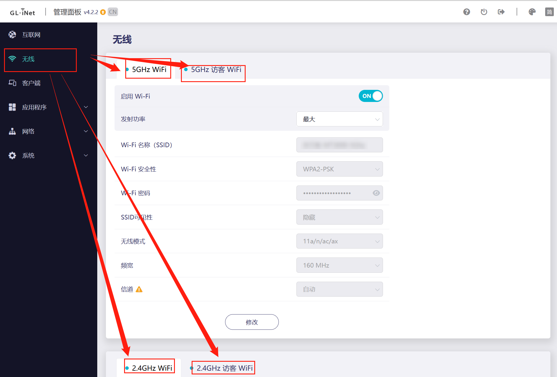注意:访客wifi与其他wifi和lan口网络不是同一个网段的,不能相互访问