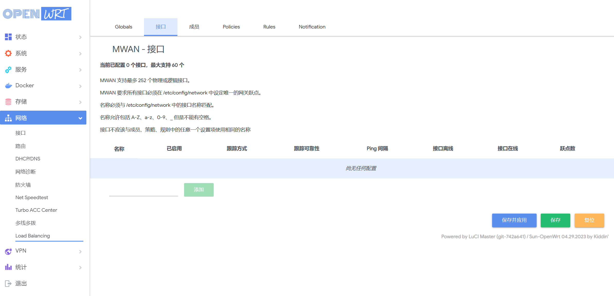我构建自己的 openwrt ,安装了MWAN3,但是我没找到他在那里,只找到一个MWAN,所以先跳过这一部分