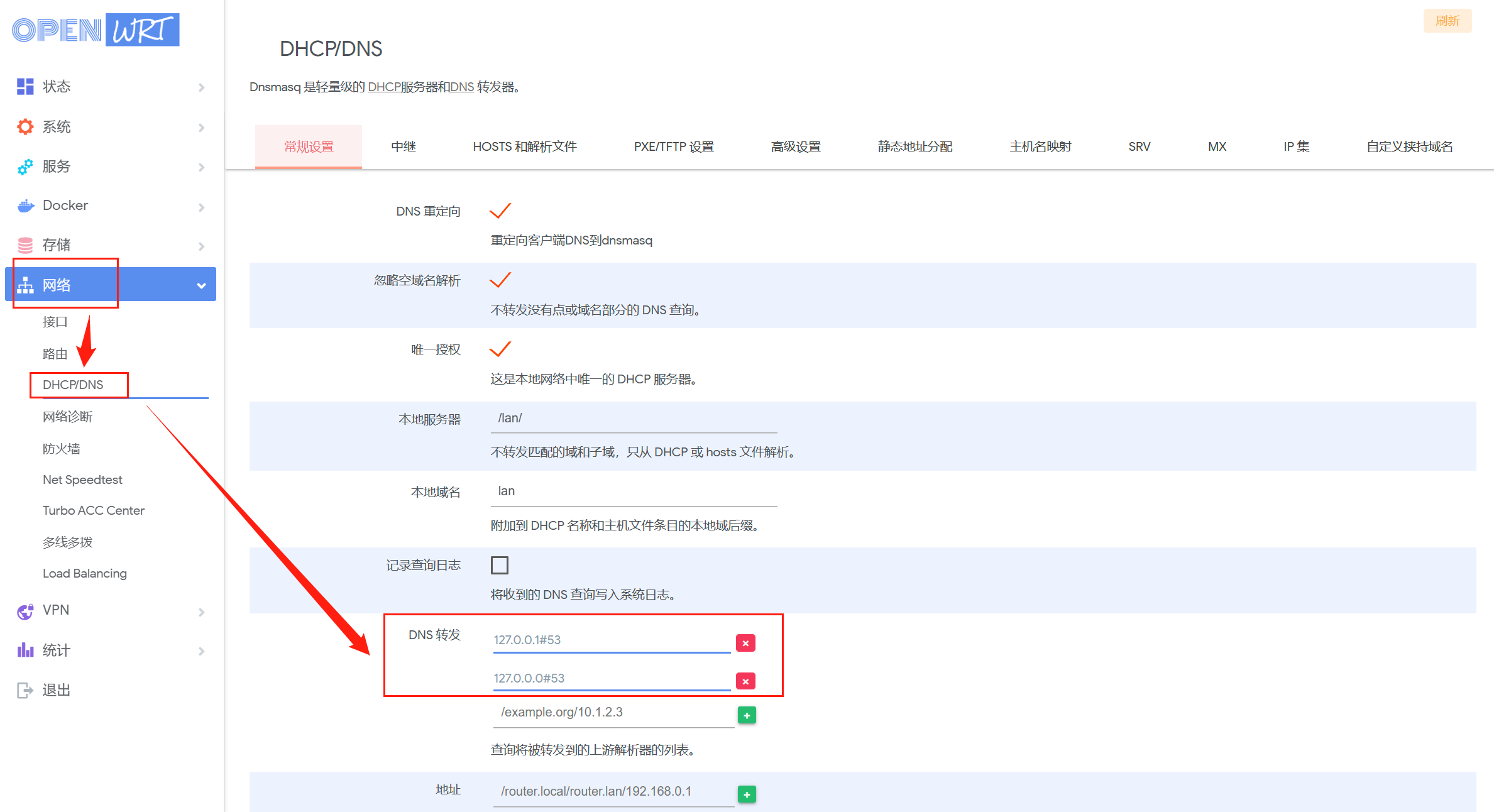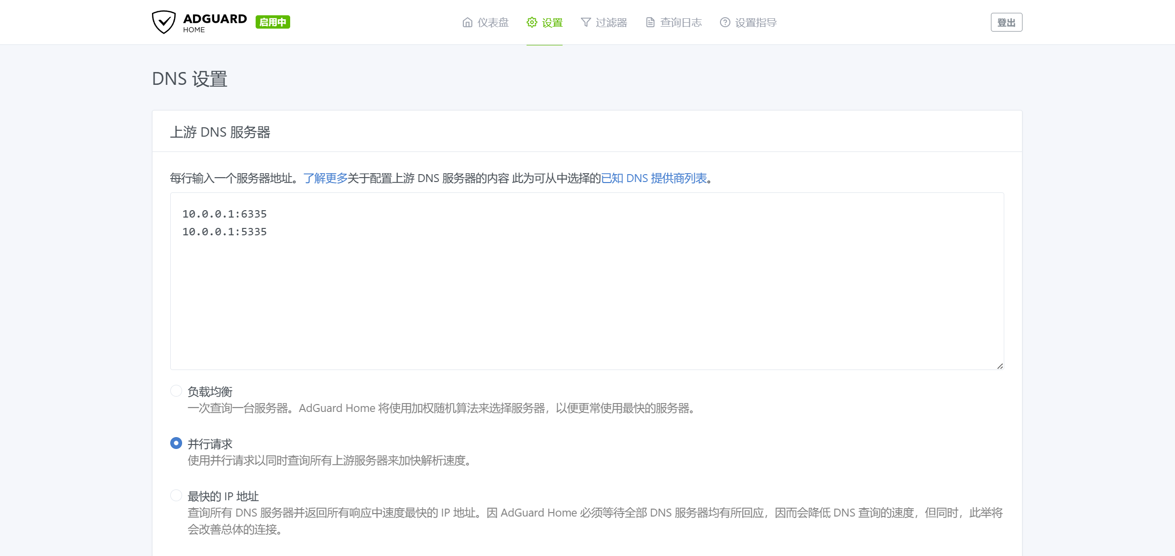 如果想配合前面配置的SmartDNS和Adguard Home,按照下面的方式配置