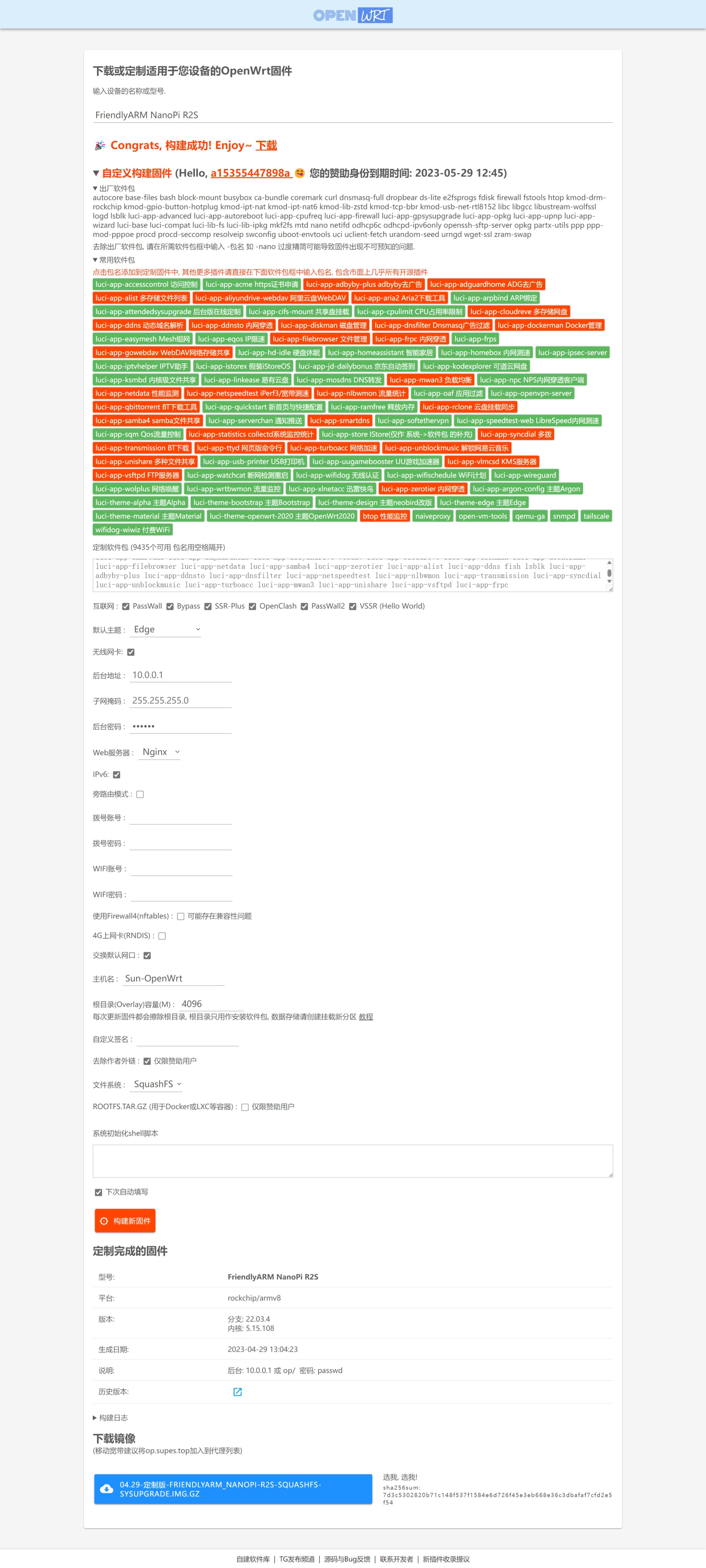 然后准备openwrt系统,我直接从直接从OpenWrt固件下载与在线定制编译 (supes.top) 构建了自己的openwrt