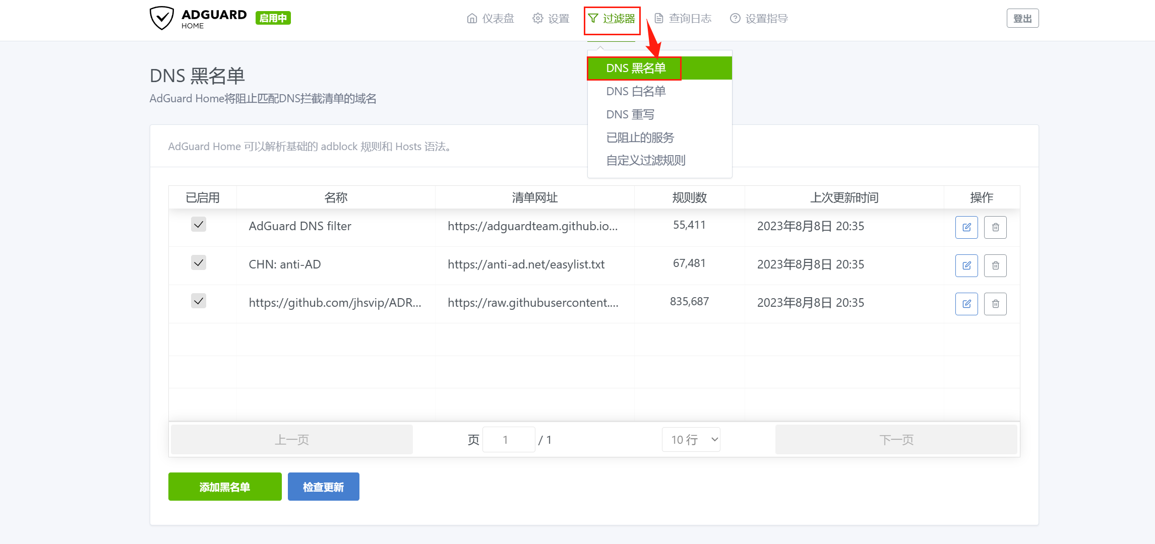 添加黑名单,我是用了这份jhsvip/ADRuls: AdGuard Home 规则,整合了80多万条规则(github.com)