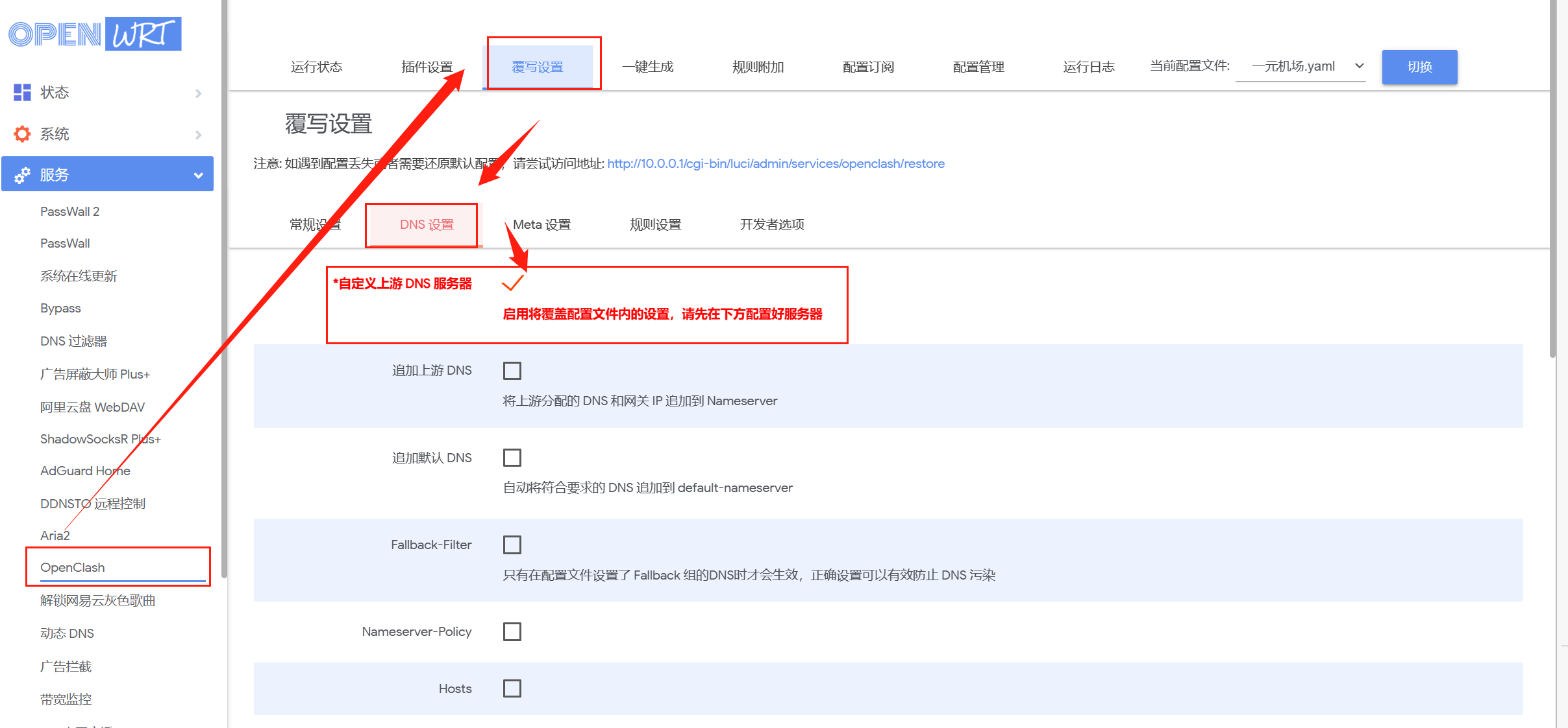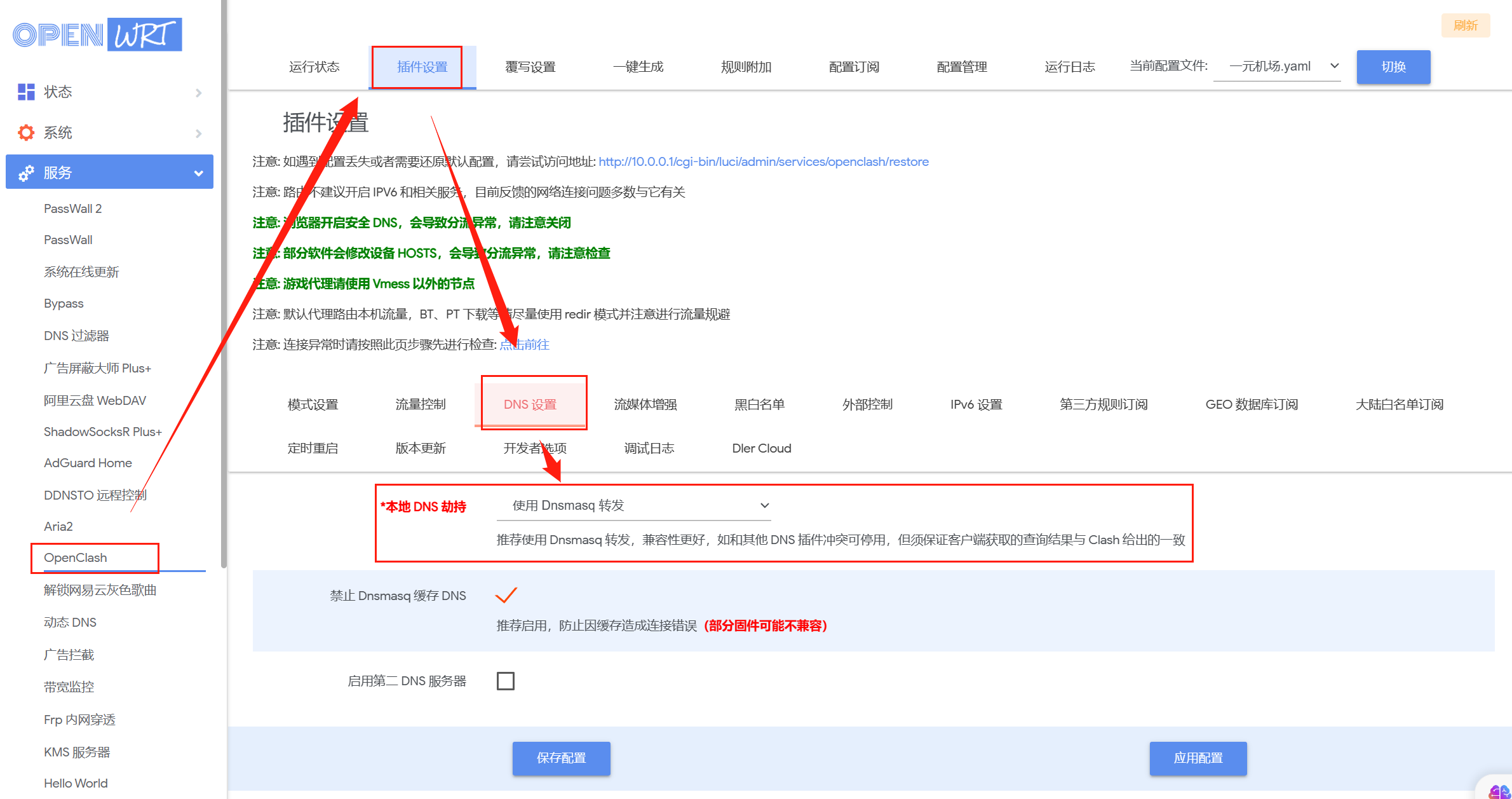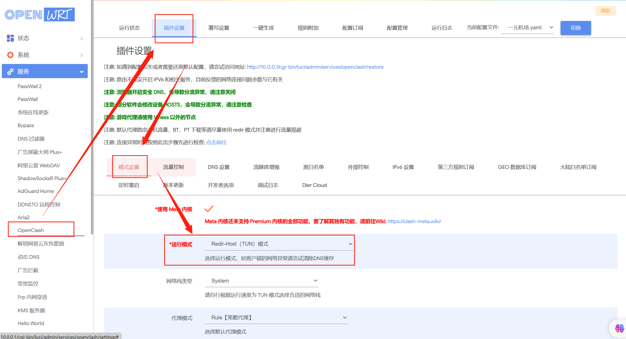 在此模式下,OpenClash会通过修改系统的DNS配置,将所有的DNS请求重定向到本地的Clash代理客户端。这样,所有的网络流量都会通过Clash进行代理。