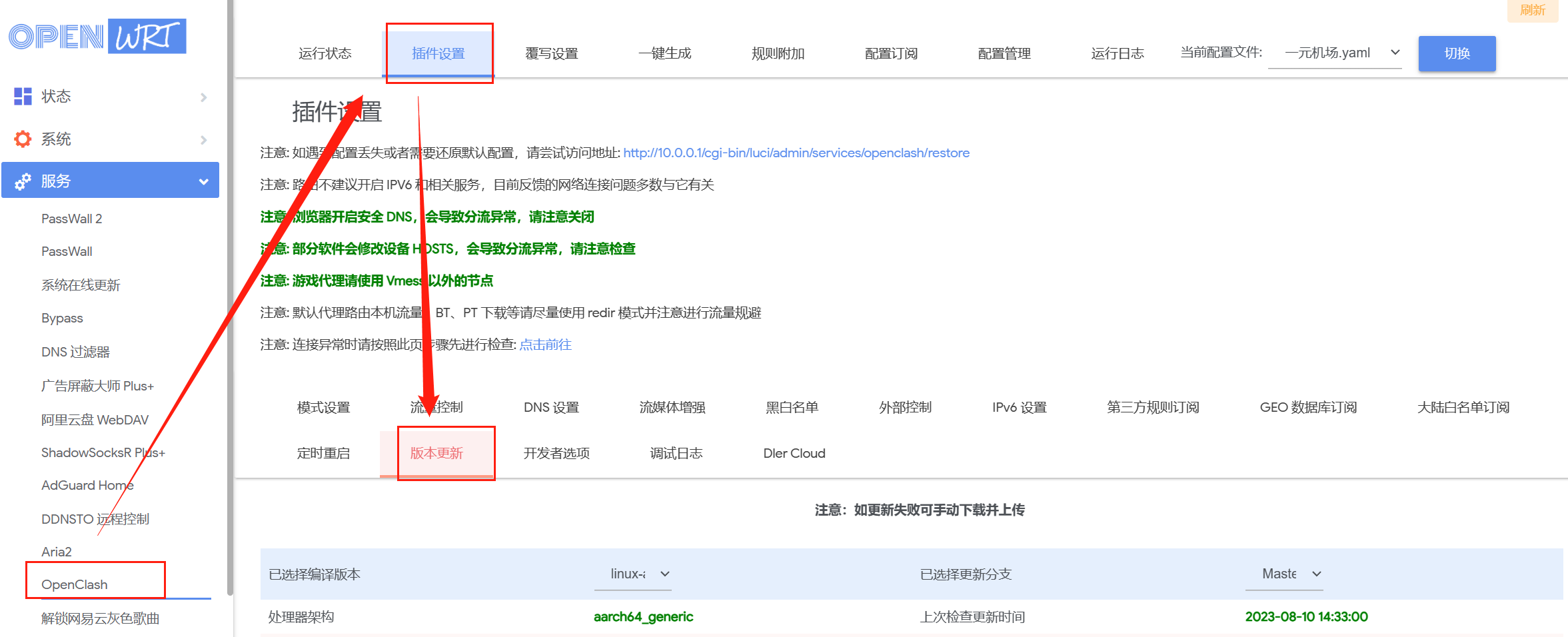检查服务内的【MWAN3分流服务】是否为关闭,该固件下默认为关闭;如果没有此插件即可无视得了