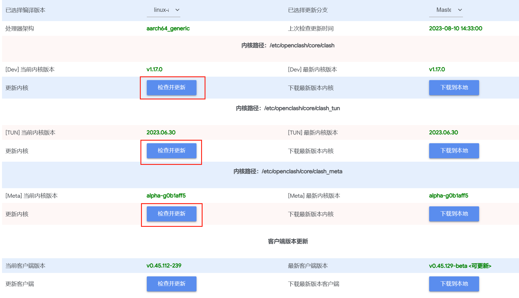 待左侧三个当前内核版本均变为绿色后再进行下一步